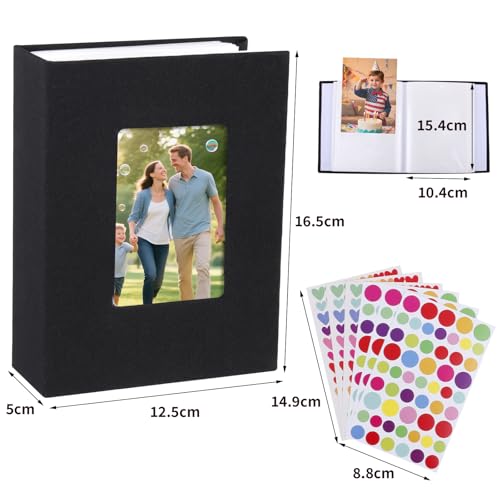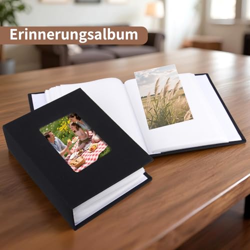 2 Stück Einsteckalbum 10×15 cm,Fotoalbum für 100 Fotos Zum Einstecken,Mini Fotoalbum mit Fenster Photo Album für Familienfotos, Ideal für Reisen, Hochzeiten und Geburtstage (Schwarz/Leinen Cover)