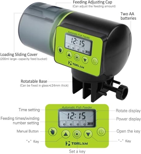 AUTOMATISCHE BETRIEB: Der Timer-Fischfütterer kann Fische automatisch durch einfache Einstellung füttern. Keine Sorge um die Fütterungsprobleme im Urlaub oder auf Geschäftsreise. Sie können die Menge des Fischfutters, die Häufigkeit der Fütterung, manuell oder automatisch einstellen.