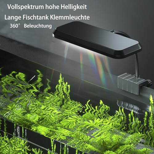 92RA LED Aquarium Beleuchtung,360° Beleuchtung ,Led Lampe Aquarium Licht,Energiesparende und beschlaghemmende Gläser,Dimmbare Wasserdicht Aquarium Licht für Wasserpflanzen und Fische