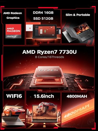 ACEMAGIC Laptop,15,6 Zoll Notebook,Ryzen 7 7730U 16-Thread CPU,bis zu 4.5GHz,16 GB RAM 512 GB SSD,NVMe PCIe 3.0,Unterstützt 4 TB SSD-Erweiterung,Gaming Laptops,Leichtgewicht,WiFi6, HDMI