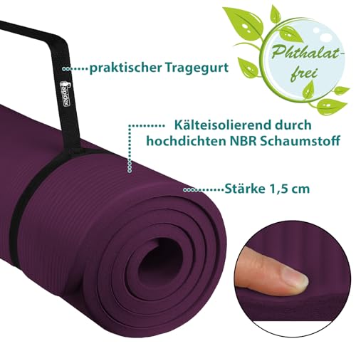 🌸 EXTRA DICK: mit 1,5 cm ist die Sportmatte besonders gelenkschonend * Rücken, Ellbogen und Knie werden sorgfältig gepolstert * auch in extra Breit erhältlich – somit hat man deutlich mehr Platz um Übungen in alle Richtungen auszuführen