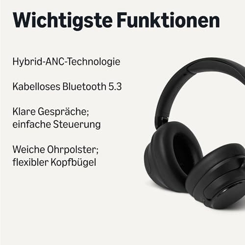 Amazon Basics Hybrid-Kopfhörer mit Aktiver Geräuschunterdrückung, Kabellos,Ohrumschließend, Bluetooth, Schwarz, Einheitsgröße