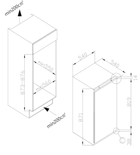 Amica EKS 16171-1 / Kühlschrank mit Gefrierfach / 880 mm Nische/Schlepptür-Technik/elektronische Steuerung/Inverter-Motior