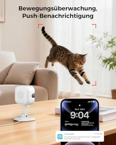 【Mehrere Installationsszenarien】: Diese überwachungskamera ist leistungsstark und vielseitig einsetzbar. Egal, ob Sie sie an der Decke als überwachungskamera innen zur Überwachung des Wohnzimmers installieren, an der Wand befestigen, um mit der überwachungskamera aussen die Haussicherheit zu gewährleisten, oder sie auf dem Schreibtisch oder am Fenster als kamera überwachung innen oder Fensterkamera platzieren, um jede Bewegung Ihres Haustiers zu beobachten – sie passt sich perfekt an. Ob Wohnung, Apartment, kleines Geschäft oder Garage – diese kamera meistert jede Umgebung mühelos