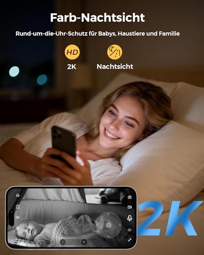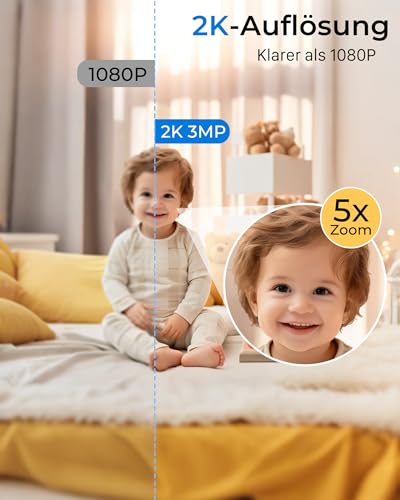 【KI-Erkennung & Aktiver Schutz】: Babyfon mit kamera ist mit einer Sirene ausgestattet. Wenn überwachungskameras eine Bewegung erkennt, nimmt sie ein Alarmvideo auf und lässt die LEDs blinken, begleitet von einem Alarmsignal, um Eindringlinge abzuschrecken. Gleichzeitig sendet mini kamera innerhalb von 0,2 Sekunden eine Echtzeit-Benachrichtigung auf Ihr Smartphone