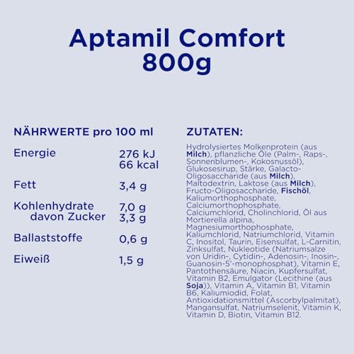 Lieferumfang: 1 x 800 g Aptamil Comfort / Nur pflanzliche Öle ohne Palmöl