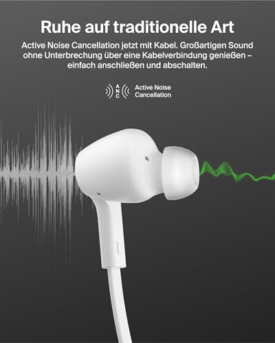 Belkin SoundForm ANC Earphones Wired with USB-C Connector, In-Ear Headphones with Microphone – Earbuds for iPhone 17, iPhone 16, iPad mini, Galaxy S25, Google Pixel 10, Android, and More – White