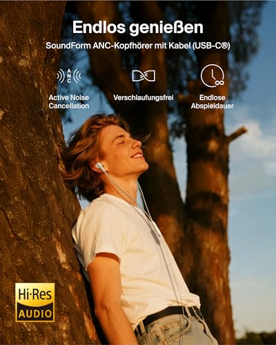 Dieser unkomplizierte In-Ear-Kopfhörer mit USB-C-Kabel im Retrostil sorgt dank Active Noise Cancellation für hervorragenden Sound und ist besonders bequem, da er gut sitzt. Er ist kompakt und robust und da er Hi-Res Audio-zertifiziert ist, ermöglicht dieser In-Ear-Kopfhörer eine Wiedergabe ohne Störung. Dank des flachen Kabels, das sich nicht verheddert, braucht kein Akku aufgeladen zu werden. Sie brauchen ihn nur an Ihr Apple iPhone 16 oder 15, Samsung Galaxy oder ein anderes Gerät anzuschließen, um großartigen Sound zu genießen. Eine 2-jährige Herstellergarantie bietet zudem Sicherheit. * Der tatsächliche Prozentsatz des recycelten Kunststoffs der einzelnen Komponenten kann variieren. Der Gesamtanteil des recycelten Kunststoffs beträgt 49 %. Belkin ist ein etablierter Marktführer für Zubehör, der seit 40 Jahren innovative technische Lösungen entwickelt. Spezifikationen: Akustik: 12-mm-Treiber Verbindung: USB-C-Anschluss Mikrofon und Bedienelement IPX5 Spritzwasserschutz Ohrstöpselgrößen: S, M, L. Kompatibel mit USB-C-Geräten wie: iPhone 17 Pro Max, iPhone 17 Pro, iPhone 17 Air, iPhone 17, iPhone 16, iPhone 16 Plus, iPhone 16 Pro, iPhone 16 Pro Max, iPhone 15, iPhone 15 Plus, iPhone 15 Pro, iPhone 15 Pro Max, Samsung Galaxy S25, S25+, S25 Ultra, Galaxy S24, S24+, S24 Ultra, Samsung Galaxy S23, S23+, S23 Ultra, Galaxy Note20, Note20+, Note20 Ultra, Note10, Note10+, Note10 Ultra, Google Pixel 9, Google Pixel 8, iPad Pro (12,9″), 4. Gen., iPad Pro (12,9″), 3. Gen., iPad Pro (11″), 2. Gen., iPad Pro (11″), iPad mini 6, iPad Air 4, Huawei P30/P30 Pro 2 Jahre Herstellergarantie Dieses Produkt, das in zu 100 % plastikfreier Verpackung geliefert wird, ist aus Post-Consumer-Recycling-Materialien* hergestellt.