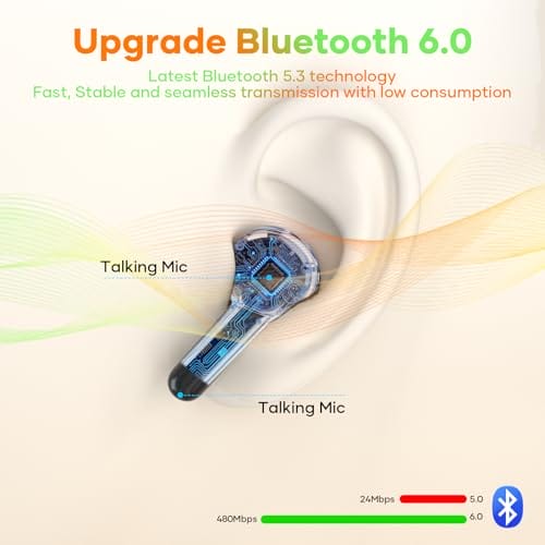 【2025 Neueste Bluetooth 6.0 & Instant Paarung】 Ausgestattet mit dem fortschrittlichsten Bluetooth 6.0, haben diese in ear kopfhörer ein schnelleres und stabileres Getriebe. Die Geschwindigkeit der Ohrhörerdatenübertragung entspricht dem doppelten Bluetooth 5.0. Unterstützen Sie HSP, HFP, A2DP und AVRCP. Nach der ersten Verbindung werden bluetooth kopfhörer automatisch mit dem letzten gepaarten Telefon zusammenarbeiten.