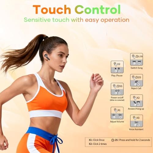 【Intelligente Touch-Steuerung mit Breiter Kompatibilität】Dank der intelligenten Touch-Bedienung ist es einfach zu bedienen, ohne dass Sie Ihr Handy in die Hand nehmen müssen. Das Wireless kopfhörer lässt sich problemlos mit einer Vielzahl von Bluetooth-Geräten koppeln, ohne dass Sie sich Gedanken über Kompatibilitätsprobleme machen müssen. Einschließlich iOS/Android, Tablets und Laptops.