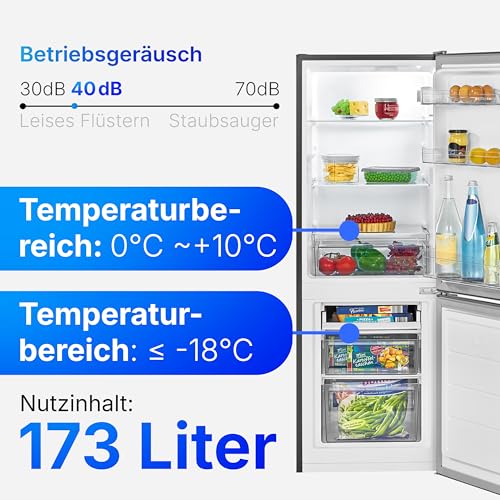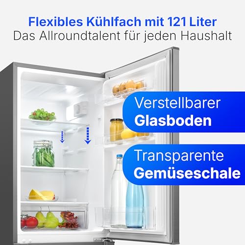 Bomann® Kühlschrank mit Gefrierfach | Energieklasse C | 143cm | Kühl Gefrierkombination leise 40 dB | 3 Ablagen & 2 Schubladen | Türanschlag wechselbar | 173L Kühlgefrierkombi | KG 7359 inox