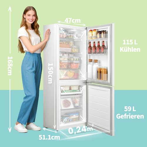 174L Kühlschrank mit Gefrierfach: 115L Kühlen + 59L Gefrieren
