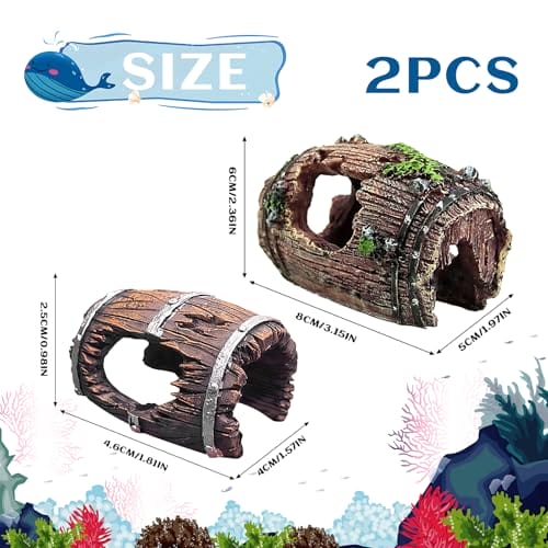 CUVZORA 2 Stück Aquarium Dekoration, Baumstamm Simulation Moos Aquarium Deko Harz, Zimmeraquarium Höhle Ornament Deko, Hohl Stamm für Reptilienversteck oder Betta Fisch Schwimmhabitat