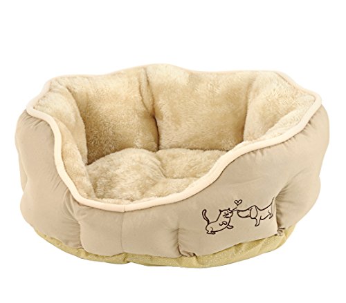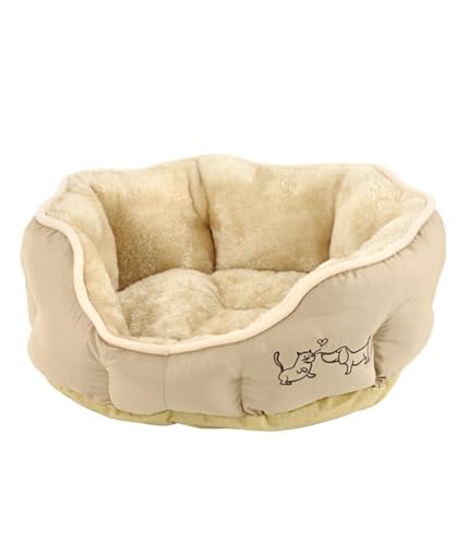 Dehner Lieblinge Hundebett und Katzenbett Sammy, oval, ca. 45 x 40 x 14 cm, Polyester, beige