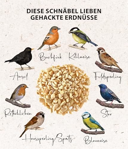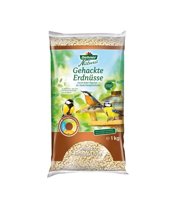 Dehner Natura Premium Wildvogelfutter, gehackte Erdnüsse schalenfrei, Ganzjahresfutter proteinreich / energiereich, hochwertiges Vogelfutter für Wildvögel, 1 kg