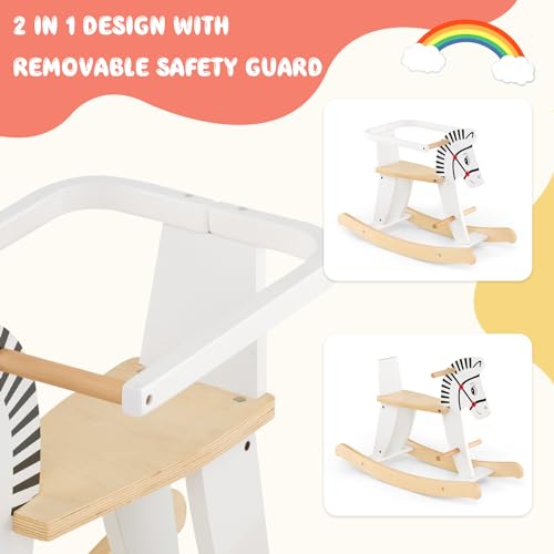 DREAMADE Schaukelpferd, Schaukeltier Holz, Schaukelstuhl mitwachsend mit abnehmbarem Schutzring und Fußstütze, Baby Schaukelpferd für Babys und Kleinkinder