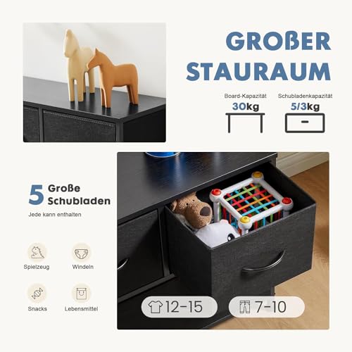 ☑️【Großer Stauraum】Aufbewahrungsschrank verfügt über 5 Schubladen, die verschiedene Aufbewahrungsbedürfnisse erfüllen. Die Holzoberseite eignet sich perfekt, um häufig verwendete Gegenstände griffbereit zu halten. Es gibt ausreichend Platz, um alle Ihre Sachen zu organisieren, damit Ihr Zimmer immer ordentlich bleibt.