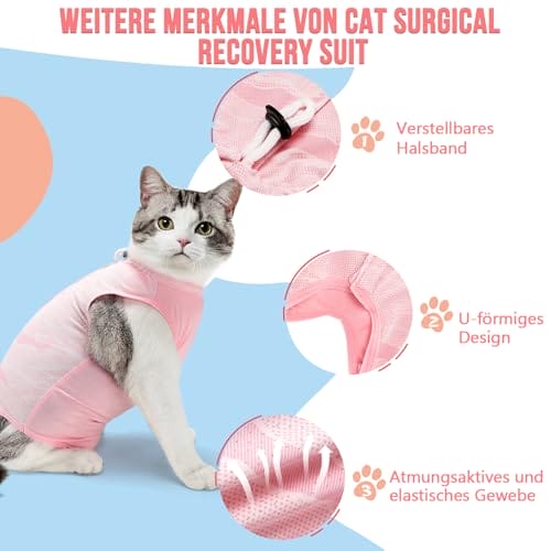 Eyein Katzenbody nach OP, Atmungsaktiver bequemer Erholungsanzug Anti-leckende Katzen-Operationsanzug mit Mesh Design für Katze Body Operation – Katzen Kätzchen E-Halsband Alternative (Hellrosa, M)