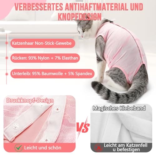 【Einfach zu tragen】Der Genesungsanzug für Katzen ist mit einem verstellbaren Gummizug am Hals und Druckknöpfen auf der Rückseite ausgestattet, die sich leicht an- und ausziehen lassen, was Zeit und Energie spart. Außerdem verhindert der neue Druckknopf das Problem des klebenden Fells, was ihn noch bequemer und praktischer macht.