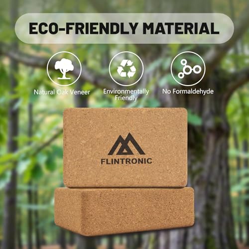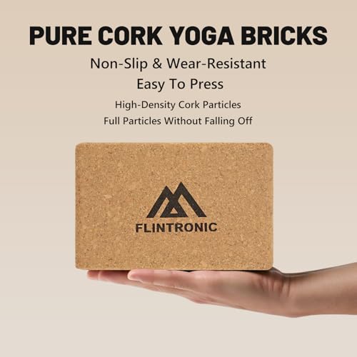 Flintronic 2er Set Yogablock aus Kork, 100% Natur Yoga Block Kork mit 1 Widerstandsband, Korkblock Yogablöcke Umweltfreundlich Nachhaltig Naturkork, Yogaklotz für Yoga Pilates Fitness