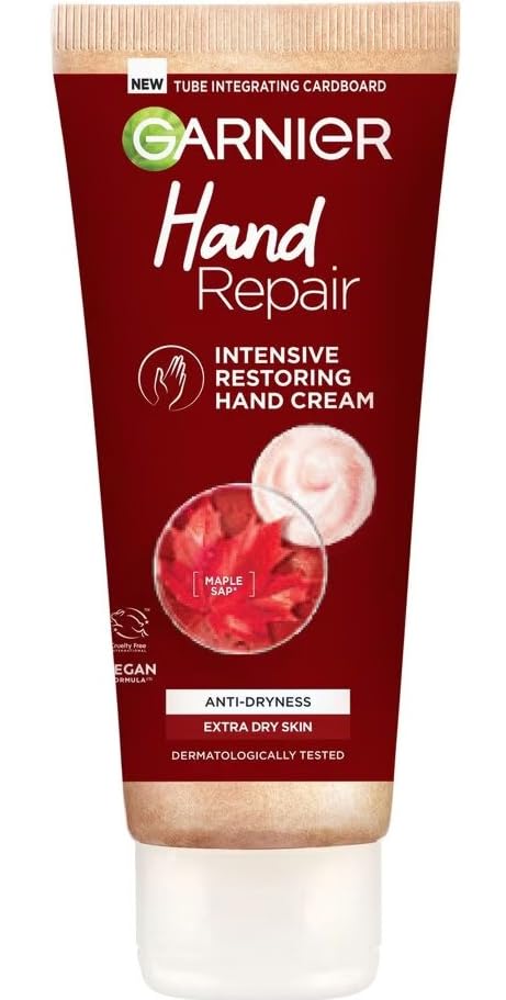 Garnier Hand Repair Intensive Restoring Hand Cream, Nourishing Canadian Maple Sap and Moisturising Glycerin, Leaves Skin Soft and Supple, Restores Extra Dry Hands 75 ml x 2