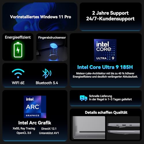 🛡️【Verlässliche Qualität – gebaut für höchste Ansprüche】 Das GEEKOM GeekBook X16 Pro durchläuft vor dem Marktstart umfangreiche Zuverlässigkeitstests mit insgesamt über 1.000 Teststunden – darunter Temperaturschocks, Vibrationen, Feuchtigkeit und Stöße – für dauerhaft hohe Stabilität. Jedes Gerät wird zudem vor der Auslieferung mehreren Qualitätsprüfungen unterzogen. Mit jahrelanger Erfahrung in der Präzisionsfertigung vereint es ultraleichtes Design, Premium-Verarbeitung und starke Performance – im Büro, im Homeoffice oder unterwegs. Dazu: 2 Jahre Garantie und Support rund um die Uhr (24/7).