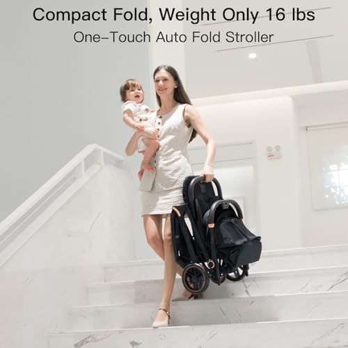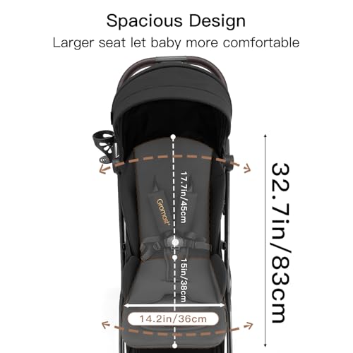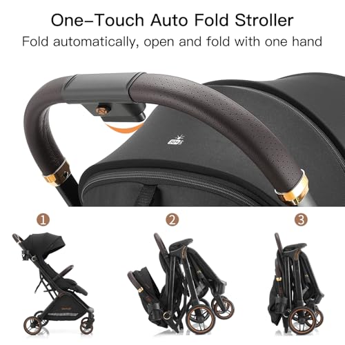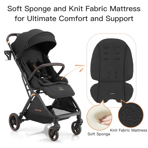 Gromast Gravity faltbarer Baby-Kinderwagen, Tragbarer Reise-Kleinkindbuggy Mit Verstellbarer Rückenlehne & Sonnendach, Leichtgewichtig Und Uv-Geschützt, Einhändig Automatisch Zusammenklappbar, Schwarz