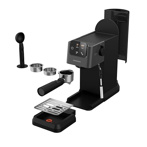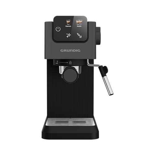 GRUNDIG KSM 4330 Siebträgermaschine mit Milchaufschäumdüse, Espressomaschine, für gemahlenen Kaffee, abnehmbarer Wassertank, Touch-Display, 1628 W Leistung, Memory Funktion, Schwarz