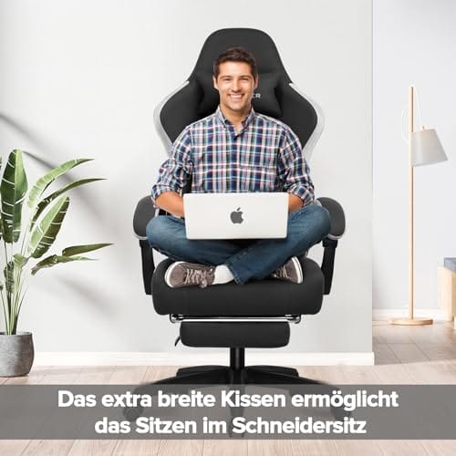 GTPLAYER Gaming Stuhl Ergonomischer Gaming Sessel Schreibtischstuhl mit Stoffoberfläche, Federsitzkissen, Verbindungsarmlehnen und Fußstütze hellschwarz
