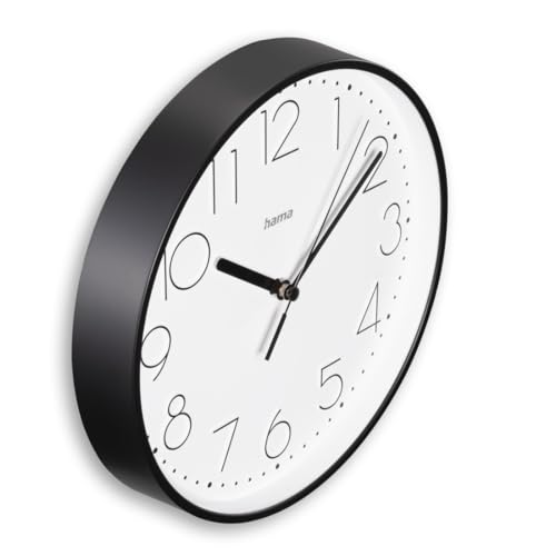 Hama Wanduhr Salina (ohne Tickgeräusche, Quarzuhr geräuscharm, Ø 22cm, große Ziffern, analoge Uhr, mit Stunden-, Minuten- und Sekundenzeiger, Glas Abdeckung, inkl. Batterie) schwarz
