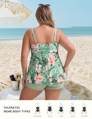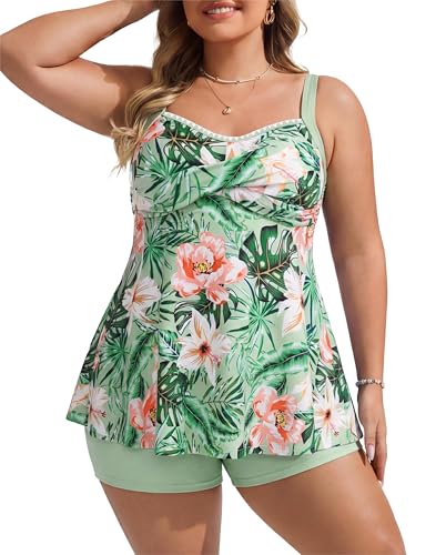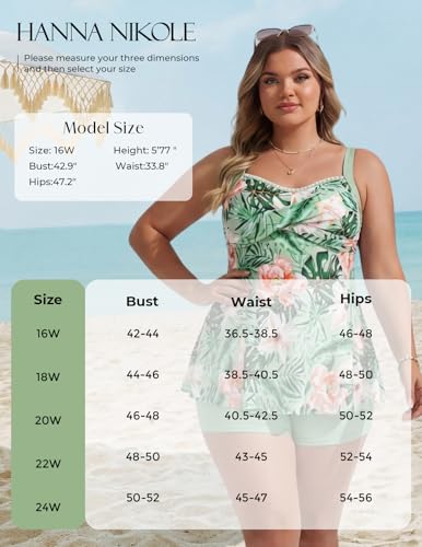 Details: Hanna Nikole Große Größen Tankini-Set Damen Bauchweg Zweiteiler Badeanzug 2026 Überschneidend Überschneidend Schwimmanzug A-Linie Badekleid mit High Waist Badeshorts Strandmode