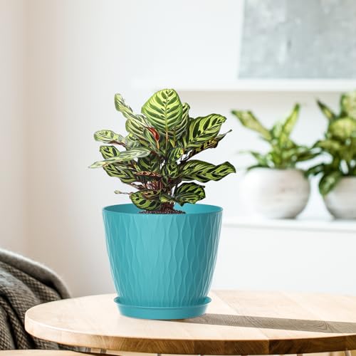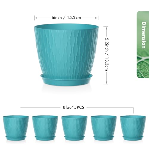 【Hochwertig und Praktisch】- Wir bieten 5 Blumentöpfe à 15.3 cm mit Untersetzern an. Moderne Kunststoff-Pflanzgefäße können Ihrem Zuhause einen Hauch von nordischem und schickem Stil verleihen, der zu jeder modernen Einrichtung im Wohnzimmer, Schlafzimmer, in der Küche, im Büro oder sogar im Garten, auf der Veranda und im Innenhof passt. Es ist am besten, nicht mehr als 1/3 der Behältergröße an Wasser in diese Töpfe zu füllen.