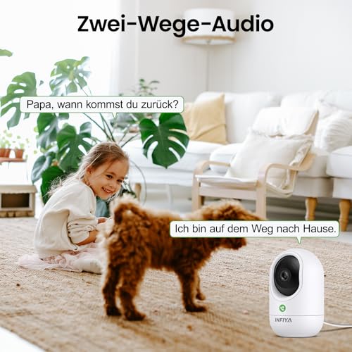 INFIYA Überwachungskamera Innen – 2K Kamera Überwachung Innen, Babyphone mit Kamera, WLAN Indoor Camera, Hundekamera mit APP, 2-Wege-Audio, Automatische Verfolgung, Nachtsicht, Bewegungserkennung