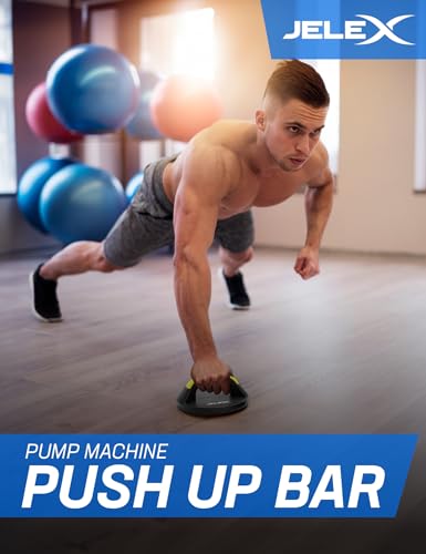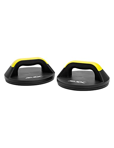 JELEX Pump Machine Push Up Bar handgelenkschonende Liegestützgriffe 2er-Set mit Rotationssystem zum Aufbau von Arm-, Schulter-, und Brustmuskulatur mit rutschfesten Füßen in gelb und rot