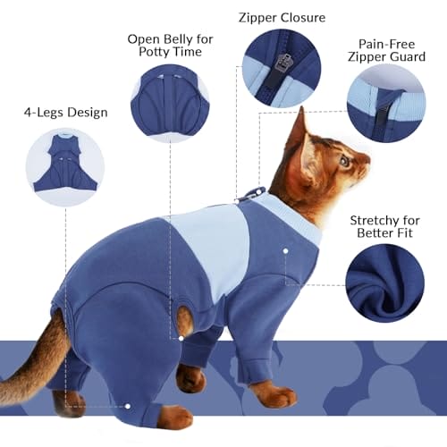 Katzenbody mit Beinen, Katzen Anzug Winter Jacke Katzenbody Nach Op mit Ärmel Lecken Und Kratzen An Nähten Verhindern(Blau, 2XL)