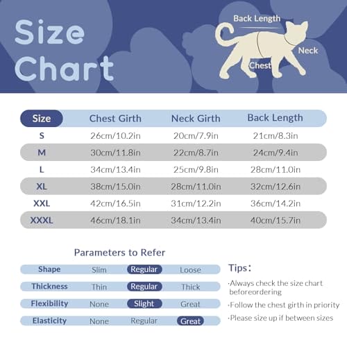 Passend für alle Jahreszeiten: Diese Katzenkleidung ist mitteldick und für alle Jahreszeiten geeignet. Diese atmungsaktive Sphynx-Katzenkleidung ist im Sommer angenehm zu tragen und hält Ihre Katze sauber und beugt Verletzungen vor. Im Frühling und Herbst hält dieser Katzenmantel Ihre Katze warm. Und im Winter ist es warm, ihn unter einer dicken Winterjacke zu tragen.