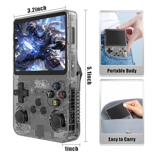 KINMRIS R36S Retro Handheld Spielkonsole, Retro Konsole 3,5-Zoll-IPS-Bildschirm, 128 G über 40.000 Spiele, tragbare Spielkonsole für Kinder und Erwachsene, unterstützt mehrere Emulatoren (Schwarz)