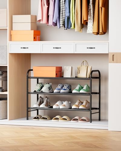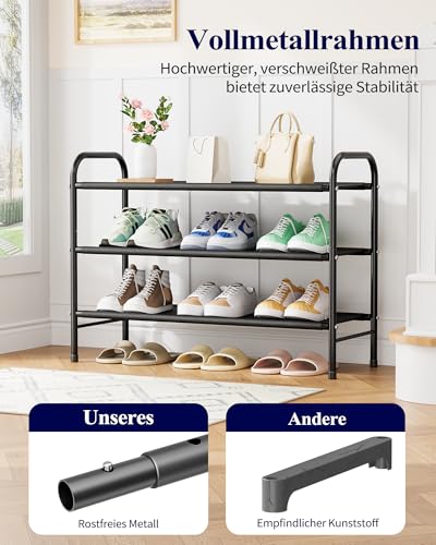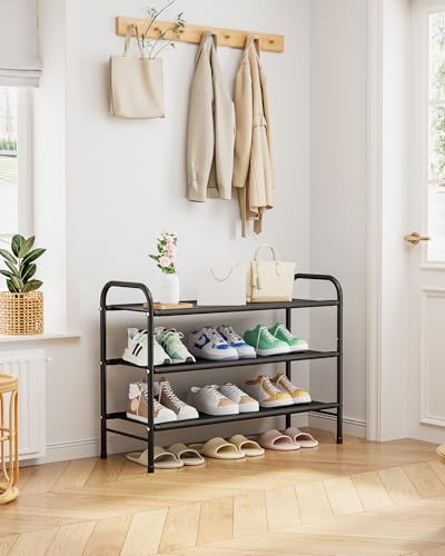 Kitsure Schuhregal Metall – 3-stöckiges, rostbeständiges Schuhregal platzsparend mit tragbaren Griffen, Schuhablage für Kleiderschrank, Eingangsbereich, Schlafzimmer, 68,5 x 28 x 55 cm, Schwarz