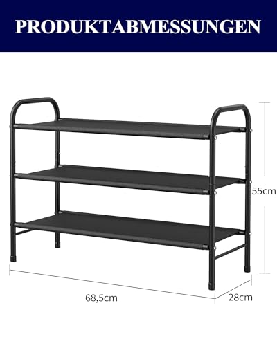 FÜR JEDEN RAUM: Mit den Maßen 68,5 x 28 x 55 cm bietet diese 3-stufige Schuhaufbewahrung eine kompakte Lösung, die perfekt in schmale Bereiche wie Flure oder Schränke passt. Dank ihrer Vielseitigkeit können Sie sowohl Außenschuhe als auch Hausschuhe genau dort verstauen, wo Sie sie am meisten brauchen – für mehr Effizienz im Alltag.