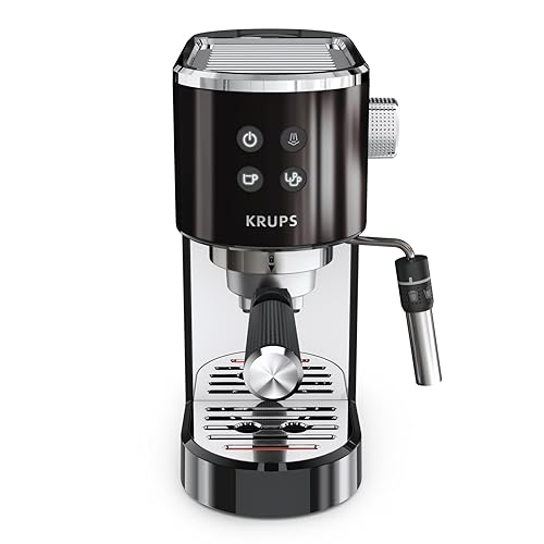 Krups Virtuoso+ Espresso-Siebträgermaschine, 15 bar Pumpendruck, 3 Crema-Filter, Edelstahl-Dampfdüse, intuitives Bedienfeld, Drehregler, inkl. Dosierlöffel und Tamper, Schwarz/Edelstahl, XP444G