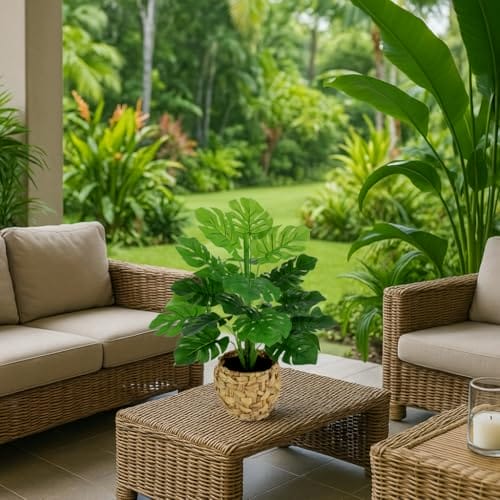 Kunstpflanze Monstera im Topf 46cm Künstliche Splitphilopflanze Blattpflanze Seidenblumen Pflanzen Dekopflanze Grünpflanze Seidenpflanze Zimmerpflanze Kunstblume Deko Büropflanze