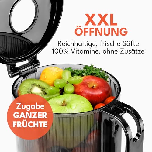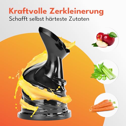 🥒 99,9% MEHR WICHTIGE NÄHRSTOFFE : 250W Obstpresse elektrisch entsaftet alle Zutaten durch hohen Druck bei geringer Drehzal, ohne Hitze – Mehr Nährstoffe und Vitamine im Saft als bei herkömmlichen Slow Juicers der Saft behält länger seine Farbe & sieht deutlich länger appetitlich aus