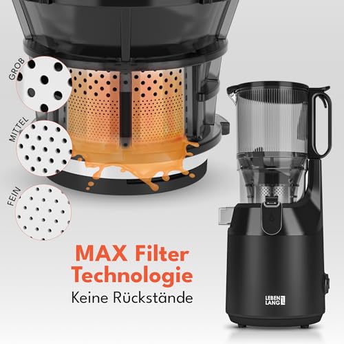 LEBENLANG Entsafter Slow Juicer – Inkl. Rezeptbuch & Große 135mm Öffnung I Perfekt für Obst ganze Früchte und Gemüse 100% BPA-Frei I Best Juicer Machine Saftpresse elektrisch Masticating Green Press