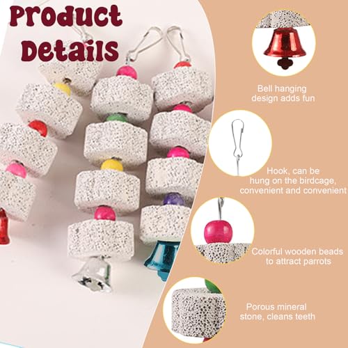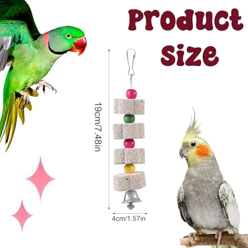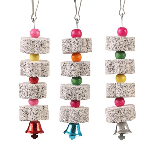 LIUYIDM 3 Stück Große Vogel Kauspielzeug, Vogelschnabel-Schleifstein mit Glocke, Mineralstein-Backenzahn-Spielzeug mit Glocke, Kauspielzeug für Papageien, für Kakadu, Sittich, Wellensittich
