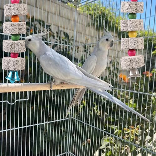 Hochwertiges Material: Papageienspielzeug besteht aus Eisendraht, Holz, Schleifstein und Glocke aus Legierung. Der Eisendraht sorgt für eine stabile Aufhängung, die Holzteile sind von Natur aus sicher, wellensittich spielzeug kann Papageien dabei helfen, ihre Schnäbel täglich zu schärfen, um ihre physiologischen Bedürfnisse zu erfüllen, die Glocken aus Legierung geben leise Geräusche von sich und mehrere Materialien wirken zusammen, um praktisches und interessantes Papageienzubehör zu schaffen, das Papageien ein reichhaltiges Erlebnis bietet.