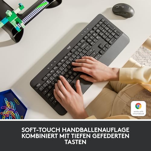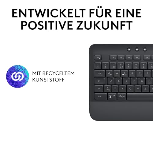 Logitech Signature K650 Comfort kabellose Tastatur mit Handballenauflage, BLE Bluetooth/Logi Bolt USB-Empfänger, Soft-Touch-Tastatur, Numpad, PC/Windows/Mac, Deutsches QWERTZ – Grau