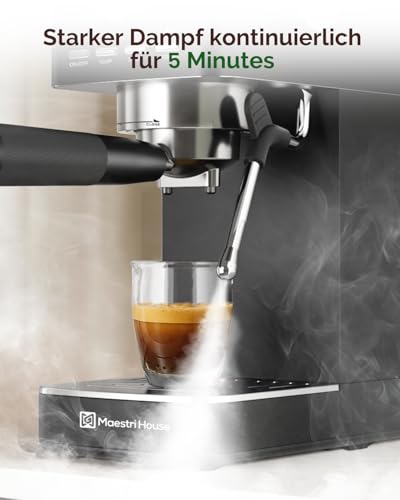Maestri House Espressomaschine 20 Bar ULKA Pumpe, Kaffeemaschine mit Milchaufschäumer und Mengenanzeige, Edelstahl Kompaktmaschine für Cappuccino & Latte Macchiato, Schwarz