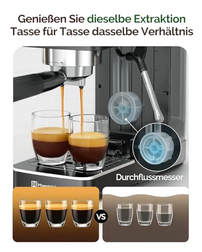 【Integrierter Durchflussmesser für gleichmäßige Shots】Misst die Wassermenge pro Tasse und passt die Flussrate automatisch an – so wird jede Extraktion identisch, ohne Nachjustieren. Gleichbleibende Ergebnisse von der ersten bis zur letzten Tasse.