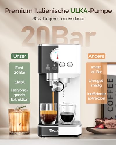 【20-Bar ULKA-Pumpe aus Italien 】Liefert konstante 20 bar Extraktionsdruck – ideal für cremiges Aroma & ausgewogenen Geschmack. Die Premium-Vibrationspumpe garantiert stabile Druckwerte über 15.000 Tassen und sorgt für perfekte Espresso-Extraktion im Haushalt .