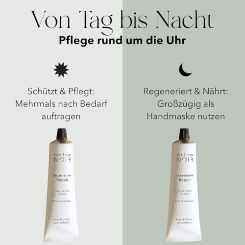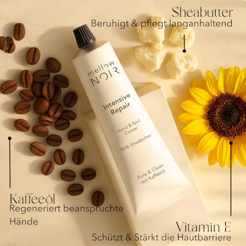mellow NOIR Intensive Repair Hand & Nail Cream 100ml – Handcreme für raue, trockene Hände – 10% Sheabutter – schnell einziehende Feuchtigkeitscreme – für gepflegte Hände & Nägel – Naturkosmetik